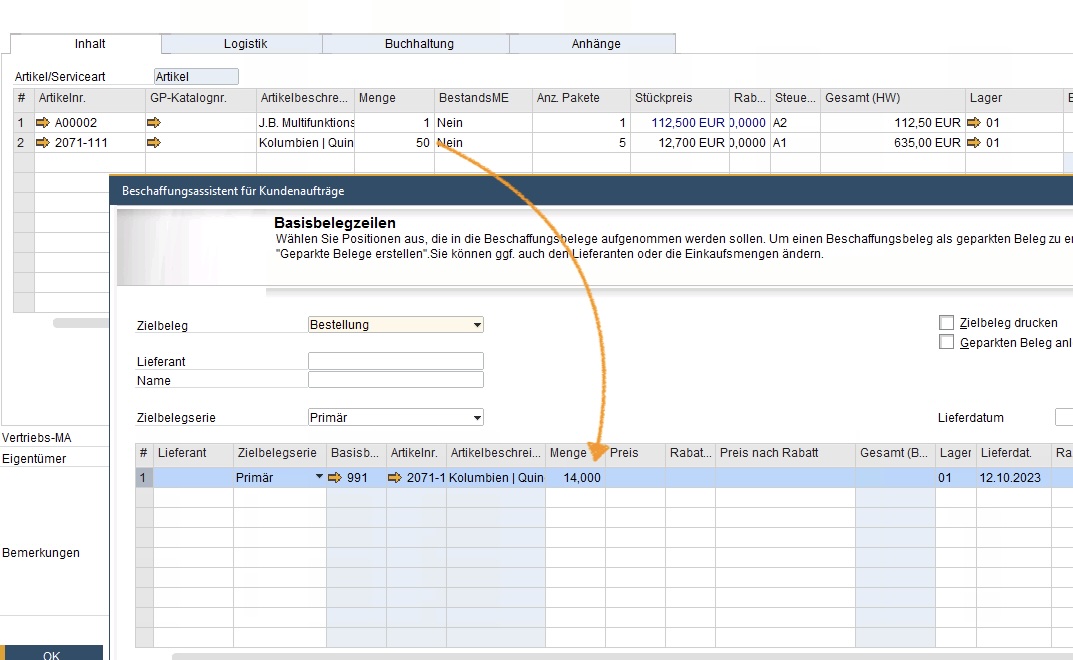 Lieferantenbestellung aus einem Kundenauftrag generieren