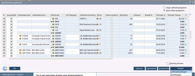 Der Mehrwert der „Bestellanforderung“ für Ihr Unternehmen: wenn alle zukünftigen Bedarfe über diese Funktion in SAP Business One erfasst sind, bekommen Mitarbeitende in der Einkaufsabteilung mit dem „Bestellanforderungsbericht“ eine tagesaktuelle Übersicht über alle Anforderungen. Diese kann vom Einkauf nach Lieferanten oder Artikel gruppiert werden, um daraus z.B. eine Kumulation für Lieferantenbestellungen zu erstellen und damit bessere Mengenpreise zu erzielen.